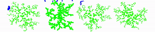 To translate moss into a simple digital structure I used Brownian trees because of their branching, dendritic pattern. I really like their high level of irregularities as that makes them a great tool for designing.