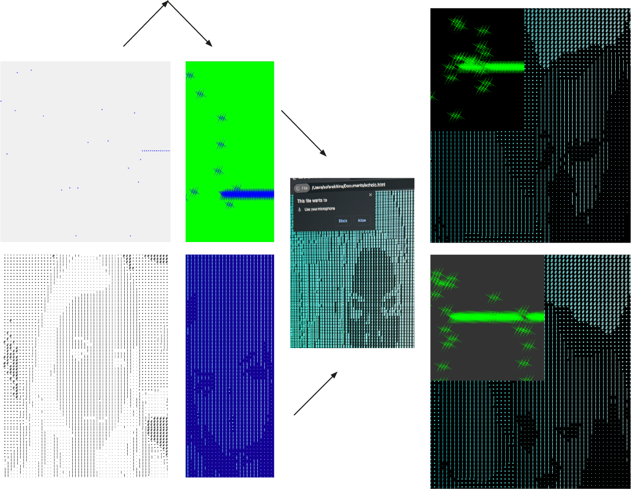 The digital interface is built in such a way that although being speculative it is a fully functioning prototype. With the help of synthetic media - machine learning algorithm it can transmit the video recording of participants in a safe and anonymous way. When building an app or website, it’s important to have checks in place to prevent users from breaking it with harmful or unexpected inputs. The same idea can be applicable to concerts especially if attempting to manage a lot of LIVE data at the same time. This way machine learning frameworks like Torch, for example, can analyze video feeds to recognize what’s happening in real-time by filtering out invalid outputs.